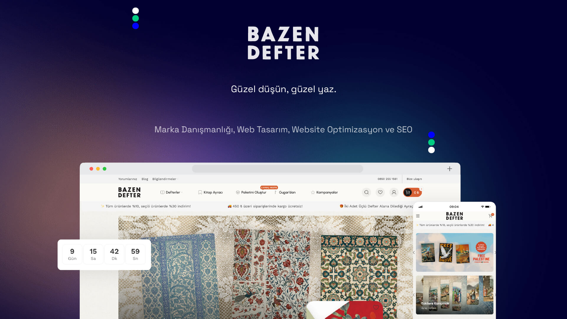 Bazen Defter'in eşsiz tasarım defterleri için aynı özen ve eşsiz düzeyde profesyonel bir web sitesi geliştirdik.