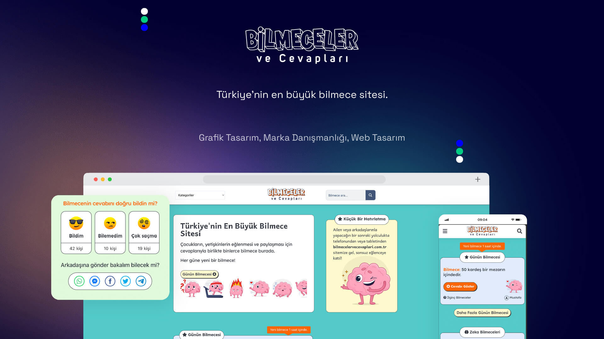 💻Tasarım ve GeliştirmeBilmeceler ve Cevapları'nın websitesini baştan aşağıya yeniden tasarlayıp çok daha kullanıcı dostu bir hale getirdik. WordPress'te şablon bir tema ile çalışan site için yeni bir tema oluşturduk, gereksiz eklenti yüklerinden kurtulduk.